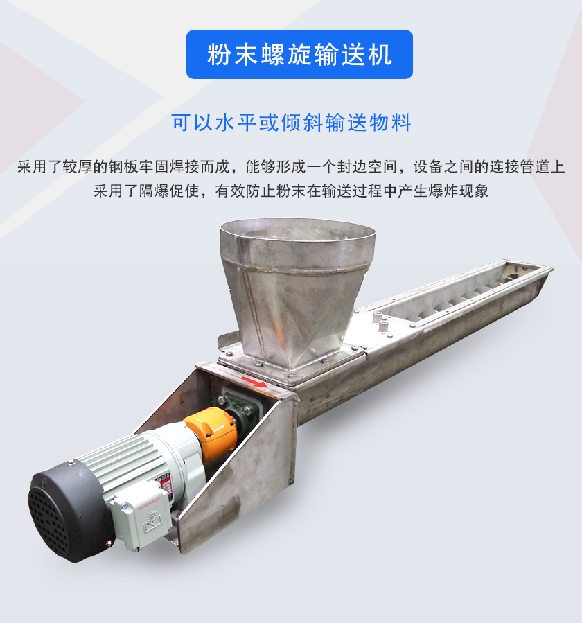 粉末螺旋輸送機(jī)是專門針對(duì)粉末物料輸送而設(shè)計(jì)的一款輸送機(jī),粉末螺旋輸送機(jī)采用全密封結(jié)構(gòu),可避免粉末在輸送過程中的粉塵污染.