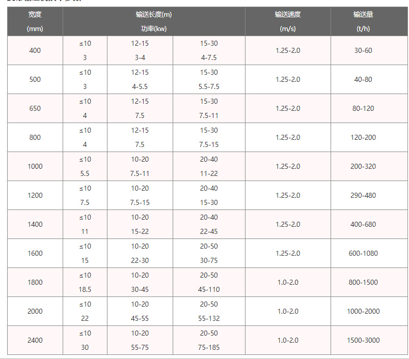 4、根據(jù)輸送量的大小采用不同的帶寬,還可在機(jī)尾加裝導(dǎo)料槽和擋板以防止物料滑落。