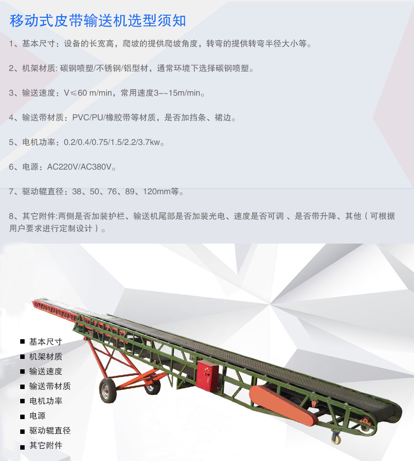 移動式皮帶輸送機(jī)選型須知