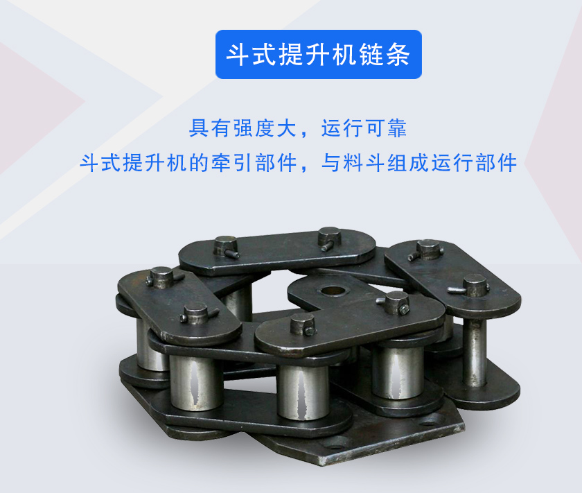 斗式提升機(jī)鏈條是斗式提升機(jī)的牽引部件,與料斗組成運(yùn)行部件,具有強(qiáng)度大,運(yùn)行可靠的特點(diǎn)。