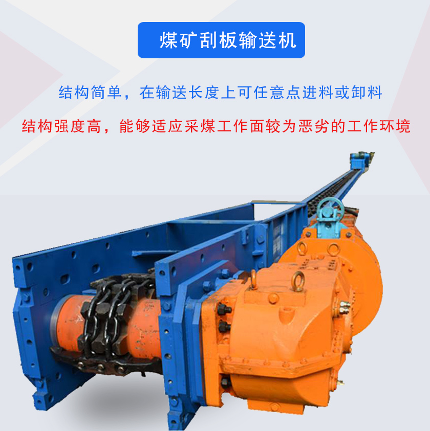 煤礦刮板輸送機(jī)主要用于煤炭薄煤層或極薄煤層、中厚或厚煤層和緩傾斜煤層輸送煤炭,也可用于掘起巷道運(yùn)輸和順槽運(yùn)輸,配套采煤機(jī)時,刮板輸送機(jī)中部槽也是采煤機(jī)的行走軌道。