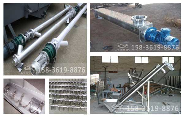 不銹鋼螺旋輸送機的幾種工作方法: 重力滑下法。螺旋輸送機螺旋的轉(zhuǎn)速較低,在螺旋面上的物料受到重力的影響遠比離心力的影響大,由于螺旋的轉(zhuǎn)動物料不斷沿螺旋面向下滑,于是產(chǎn)生軸向的位移,cx螺旋機基本上屬于此種原理。此種原理的螺旋機的填充系數(shù)值一般都小于05。因為充填過多,物料不是沿螺旋面滑下,而是被螺旋的攪動使它翻越螺旋軸落下,并不能獲得大的軸向速度。既然慢速螺旋的物料受重力的影響較大,顯然它不能用于垂直螺旋或傾斜角較大的向上輸送情況。 滑下法原理,雖然廿值小,輸送能力低,但物料處于輕松散的自由滾落的狀態(tài),較少受到擠壓,適用于易結(jié)塊、磨琢性大的物料。當(dāng)采用標準螺旋時,不但能保持較快的滑下速度,并且對傾斜輸送有一定的適應(yīng)能力(傾角一般在20°以內(nèi))。 推擠法。此法用于倉底的卸料輸送螺旋,物料經(jīng)常充滿螺旋,顆粒物料受到的靜壓較大,每粒物料本身的重力遠小于其他作用力(螺旋推力、摩擦力、靜壓力)。此種螺旋的阻力是很大的,它要克服較大壓力下形成的摩擦力。工作時物料好象是螺母,螺旋起螺釘似的作用,只要螺母不轉(zhuǎn)動(或轉(zhuǎn)動較慢),利用螺釘?shù)男D(zhuǎn),就可以使螺母沿軸向移動,倉底卸料螺旋常采用變節(jié)距螺旋,在出口端的節(jié)距較大。 離心誘導(dǎo)法。用于垂直的傾斜度較陡的螺旋輸送機,或轉(zhuǎn)速較高的螺旋輸送機,其工作特點是物料充填量介于兩種之間,在螺旋的高轉(zhuǎn)速下,松散的物料受到離心力的作用遠比重力等其他外力的影響大。