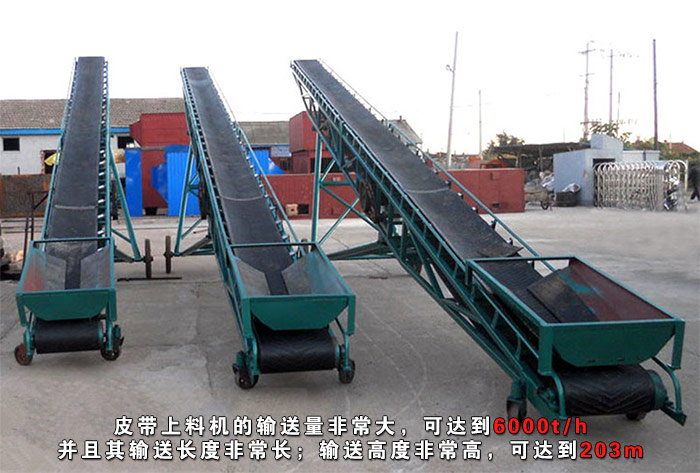 1)輸送量大——皮帶上料機的輸送量非常大,可達到6000t/h,并且其輸送長度非常長;輸送高度非常高,可達到203m。