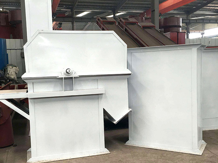 斗式提升機(jī)由殼體、牽引件(輸送鏈)、料斗、驅(qū)動輪(頭輪)、改向輪(尾輪)、張緊裝置、導(dǎo)向裝置、加料口(入料口)和卸料口(出料口)。