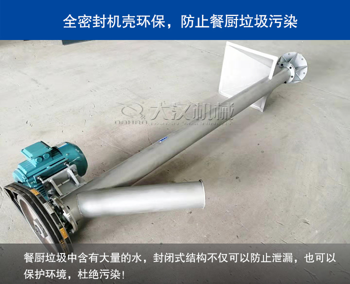 無軸螺旋輸送機(jī)采用全封閉輸送和易清洗的螺旋表面,全封閉的結(jié)構(gòu)也可以保障可保證餐廚垃圾在輸送過程中發(fā)生物料飛濺和泄漏問題,從而保護(hù)環(huán)境衛(wèi)生和所送物料不受污染、不泄漏。
