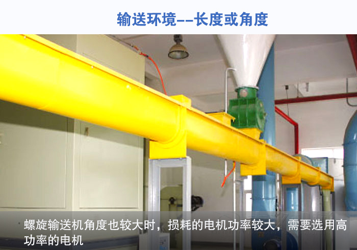長(zhǎng)度超過(guò)15米,管壁厚度必須在10-15mm;角度大于30度,選用高功率電機(jī)。輸送環(huán)境決定了螺旋輸送機(jī)的長(zhǎng)度和連接方式,輸送長(zhǎng)度較大時(shí),要求螺旋輸送機(jī)管壁的厚度必須要在10-15mm,否則螺旋輸送機(jī)容易斷裂。螺旋輸送機(jī)角度也較大時(shí),損耗的電機(jī)功率較大,需要選用高功率的電機(jī)。