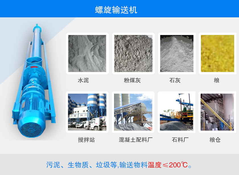螺旋輸送機(jī)可以輸送可以水平,傾斜或垂直輸送粉狀,顆粒狀及小塊狀物料,同時具備混合、攪拌、冷卻功能,有軸螺旋輸送機(jī)可以無粘性的干粉物料和小顆粒物料.(例如:水泥、粉煤灰、石灰、糧等),無軸螺旋輸送機(jī)適合輸送機(jī)由粘性的和易纏繞的物料。(例如:污泥、生物質(zhì)、垃圾等,輸送物料溫度≤200℃。螺旋輸送機(jī)適用于攪拌站,水泥廠、混凝土配料廠,石料廠,糧倉等場合。