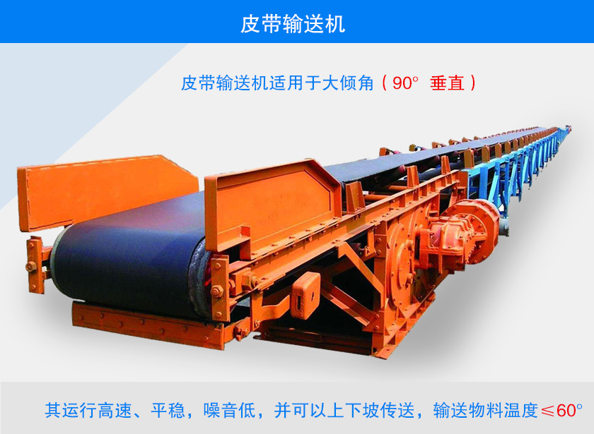 皮帶輸送機(jī)適用于大傾角(90°垂直)連續(xù)或間歇運(yùn)動來輸送100KG以下的物品或粉狀、顆狀物品,其運(yùn)行高速、平穩(wěn),噪音低,并可以上下坡傳送,輸送物料溫度≤60°。帶式輸送機(jī)用于井下采礦工程、露天采礦、大型自卸船、鋼廠的高爐上料等場合。