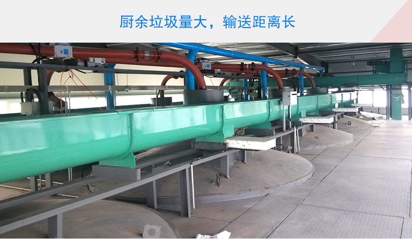 對(duì)于廚余垃圾輸送,一般量比較大,無軸螺旋輸送機(jī)扭矩可達(dá)4000N/m,輸送長(zhǎng)度可達(dá)60m,輸送量是相同直徑傳統(tǒng)有軸螺旋輸送機(jī)的1.5倍,輸送量大,能滿足廚余垃圾的輸送需求。