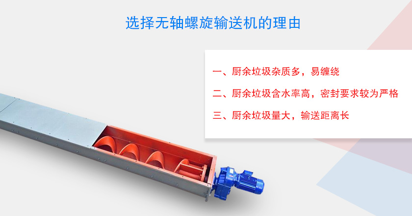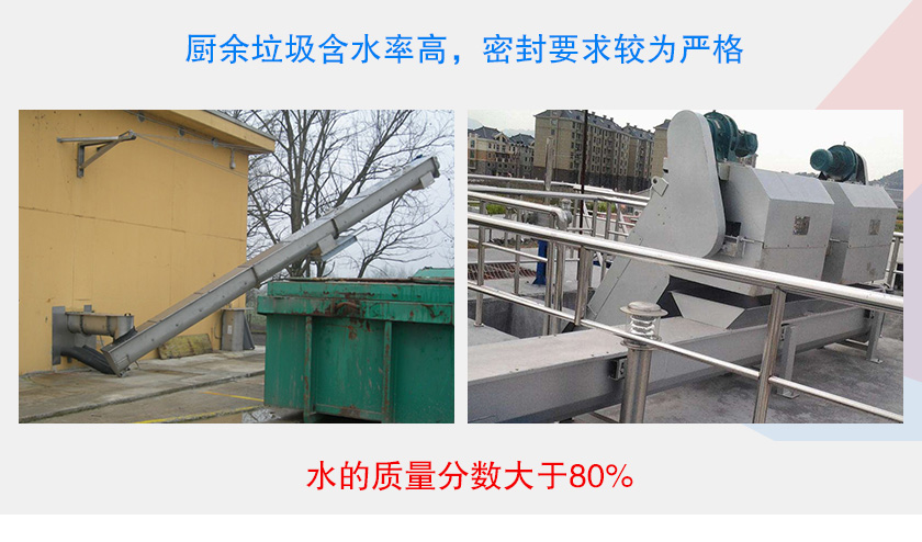 廚余垃圾含水率高,(水的質(zhì)量分?jǐn)?shù)大于80%),不便收集運(yùn)輸,熱值低,處理不當(dāng)容易產(chǎn)生滲瀝液等二次污染物,所以要求螺旋輸送機(jī)密封條件要好,無軸螺旋輸送機(jī)采用全封閉輸送和易清洗的螺旋表面,可保證環(huán)境衛(wèi)生和所送物料不受污染、不泄漏。