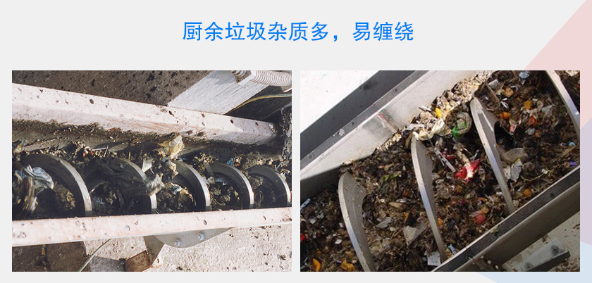 廚余垃圾一般是日常生活中丟棄的菜葉、果皮、剩飯剩菜等,里面含有的雜質(zhì)多,且大小不一,使用普通螺旋輸送機(jī)會(huì)導(dǎo)致物料粘在葉片上,造成堵料現(xiàn)象,不僅影響輸送效率,還會(huì)導(dǎo)致螺旋輸送機(jī)損壞。無軸螺旋輸送機(jī)由于采用無軸設(shè)計(jì),排除了廚余垃圾纏繞在葉片上的問題,因此非常利于輸送。