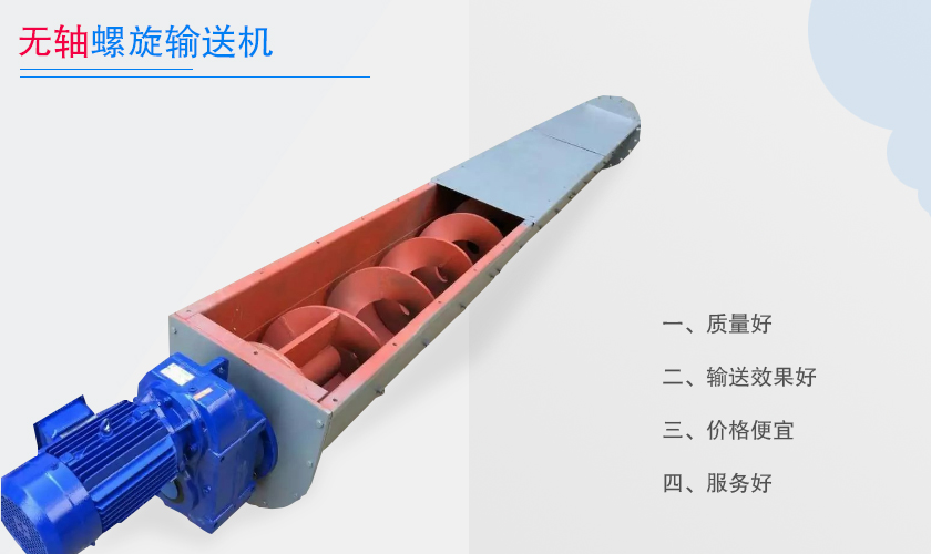 無軸螺旋輸送機采用無軸螺旋葉片,是輸送粘性高、易于纏繞的物料時輸送設備,無軸螺旋輸送機廠家有很多,哪家生產(chǎn)的無軸螺旋輸送機質(zhì)量好呢?