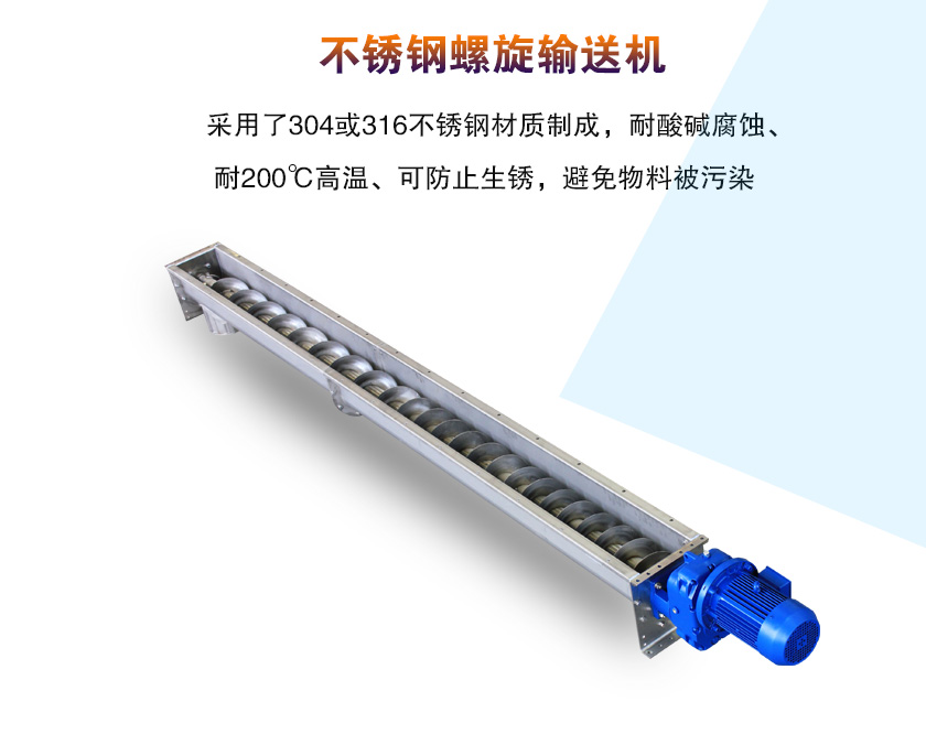 不銹鋼螺旋輸送機(jī)采用了304或316不銹鋼材質(zhì)制成,耐酸堿腐蝕、耐200℃高溫、可防止生銹,避免物料被污染,是食品、醫(yī)藥行業(yè)專(zhuān)用的一種輸送機(jī)設(shè)備,那么不銹鋼螺旋輸送機(jī)多少錢(qián)一臺(tái)呢?接下來(lái)就來(lái)為您介紹一下: