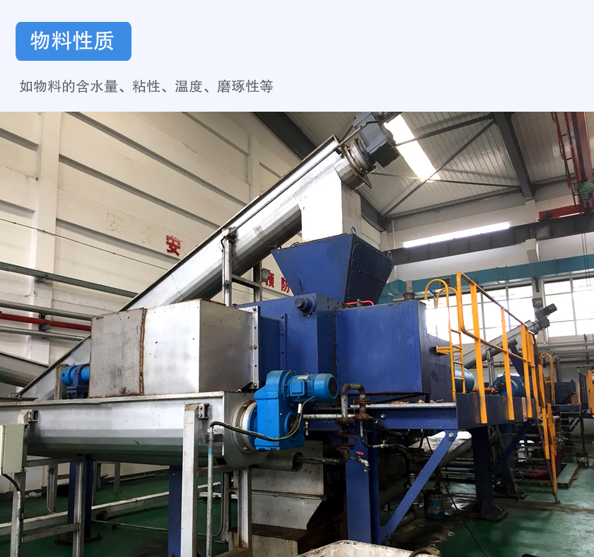 如物料的含水量、粘性、溫度、磨琢性等,舉例來說,物料的粘性比較大,在輸送過程中很容易結塊,物料就會很容易粘在螺旋葉片與設備的內壁上面,這就讓物料在輸送的過程當中受到的阻力加大,從而影響到管式螺旋輸送機的輸送效率。